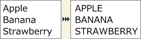 メニューバーの[エクステンション]メニューより、[テキスト]-[大文字化]を選択すると、テキストを全て大文字にします。