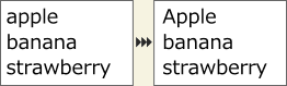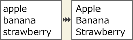 メニューバーの[エクステンション]メニューより、[テキスト]-[文頭のみ大文字]を選択すると、配置している文字列の文頭のみ大文字にします。
