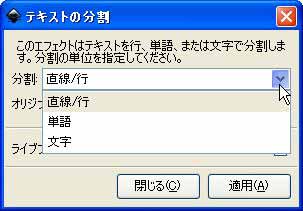 テキストを、[行]または、[単語]または、[文字]単位に分割します。