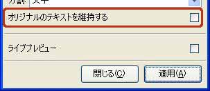 適用元のテキストを消去するか(OFF)維持するか(ON)を選択することができます。