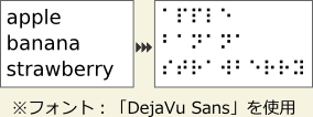 ※点字グリフを含むUnicodeフォントについては、「Braille Unicode font」などと検索してみるとヒットすると思います。