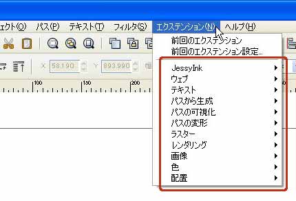 エクステンションとは拡張機能のことです。Inkscapeには、さまざまなエクステンションが用意されています。