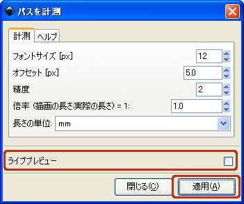 下記の例は[パスの可視化]の[パスの計測]というエクステンションのダイアログです。