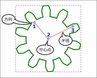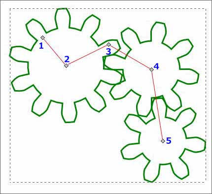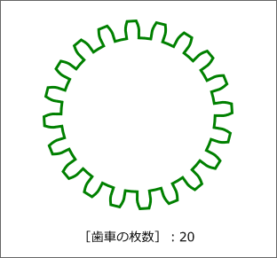 噛み合わさった歯車を簡単に描くことができます。