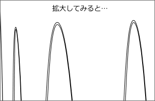 数値が増えるほど、ハッチ間が平行でなくなります(左右にランダムにぶれます)。1次側は下側、2次側は上側です。