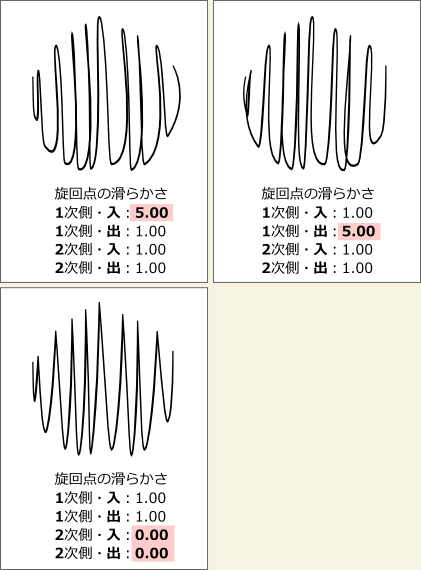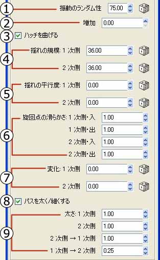 ハッチのカーブの滑らかさを設定します。数値が増えるほど滑らかになり、0のときにストレートになります。