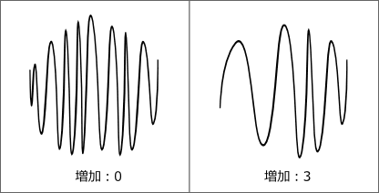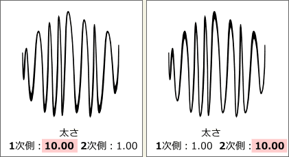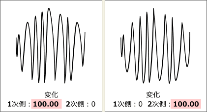 カーブの変化の量を設定します。1次側は下側、2次側は上側です。