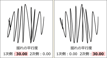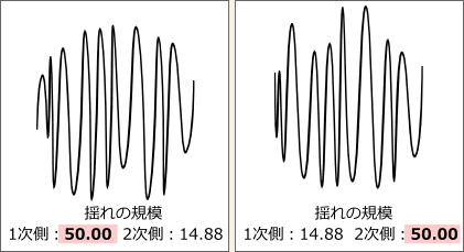 ハッチの振り幅の規模を設定します。1次側は下側、2次側は上側の振り幅です。