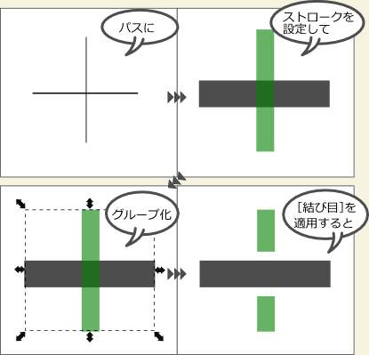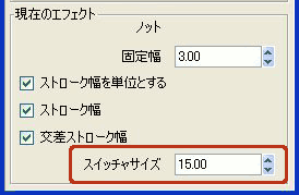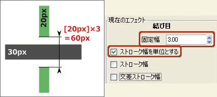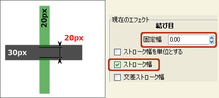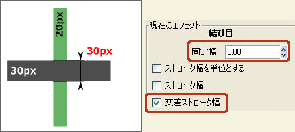例えば、[固定幅]が10.00で[交差ストローク幅]がONなら・・・