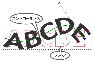 コントロールパスの変形に伴って「ABCDE」の文字も変形します。