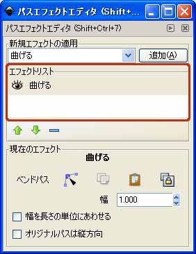 エフェクトを設定しているパスを選択すると、[エフェクトリスト]欄に、設定中のエフェクトがリスト表示されます。