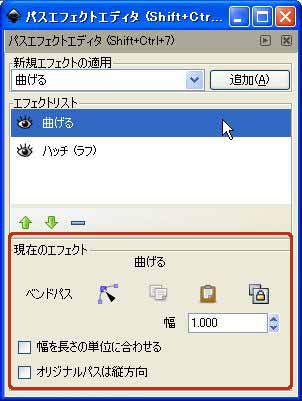 [曲げる]エフェクトの詳しい説明はパスエフェクト機能>曲げるをご覧ください。