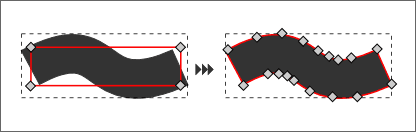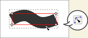 ただし、表示上変形しているように見えているだけであって、実際のパス(赤線)が変形されているわけではありません。