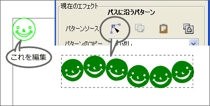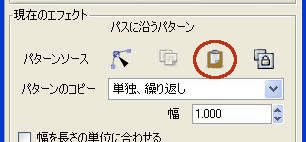パスを選択し、[現在のエフェクト]の[パターンソース]の欄から