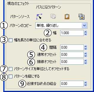 数値の単位は、通常はpixelですが、[⑦ パターンサイズを単位としてオフセットする]をONにすると、パターン1つ分のサイズが1単位になります。