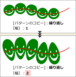 パターンのコピー]が[繰り返し]モードのとき、[幅]を2にすると・・・