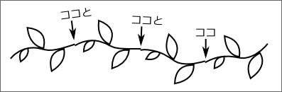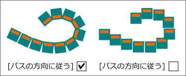 下記の2つのパスを使って[パスに沿うパターン]を作ると、