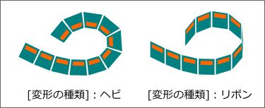 ※下記の例で、赤い線はエフェクトを適用しているパスの位置を示しています。