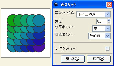 [再スタック方向]を[下→上(90)]に設定すると、円が下から上へ積み重なります。