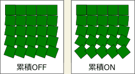 チェックを入れると[角度(①)]で設定した回転の角度が累積していきます。