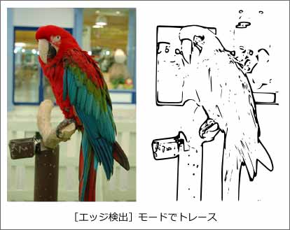例えば、下記の左の画像を[エッジ検出]モードでトレースすると、右のようになりますが、