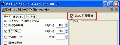 [ビットマップをトレース]ダイアログの、[SIOX前景選択]にチェックを入れます。