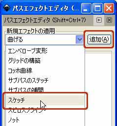 パスを選択し、[パスエフェクトエディタ]より[スケッチ]を選択し、[追加]します。