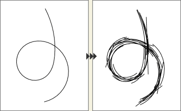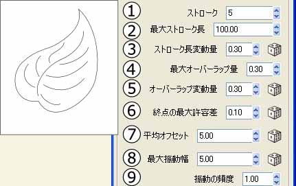 [平均オフセット]と次の[最大振動幅]ともに0の場合は、全てのスケッチ線が元のパスにピタリと重なります。