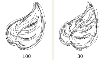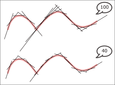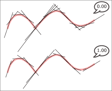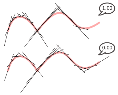 数値が大きくなるほど、パスの終点(端点)でスケッチが短くなります。