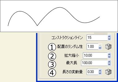 ※ここから先の項目は、[配置のランダム性]を0.00(ランダム無し)に設定しています。