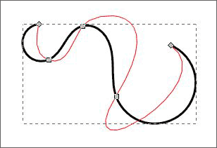 (ノードツール)を選択し、パスのアウトライン(赤線)を表示して編集します。