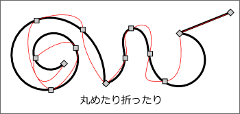 ベジェ曲線と同様、角を作ったり、間に直線を入れたりすることもできます。