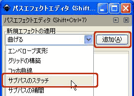 [ステッチパス]というコントロール用のパスを変形させると、追加されたサブパスも変形します。