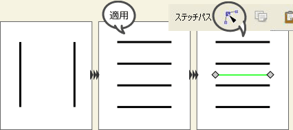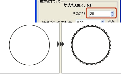 例えば、下記のように複合パスに[サブパスのステッチ]を適用し、ステッチパスの