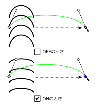 [幅の基準を長さと相対的にする]のON/OFFの違いは、