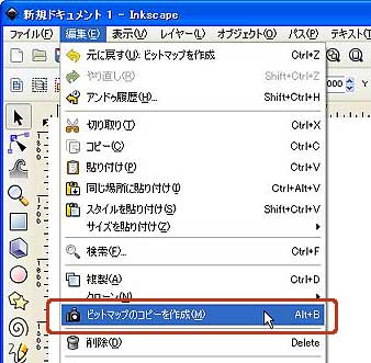 メニューバーの[編集]メニューより、[ビットマップのコピーを作成]を選択すると、