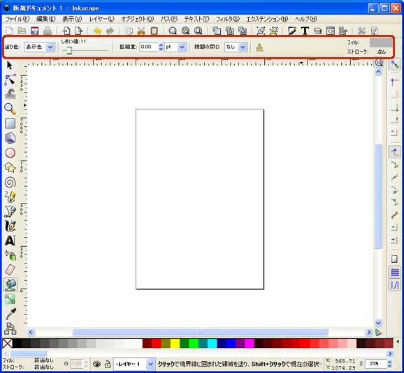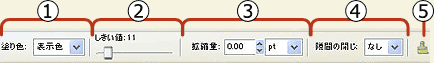 ツールコントロールバーで、塗りつぶす際の詳細を設定します。