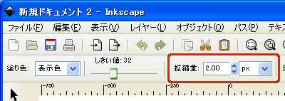 ツールコントロールバーの[拡縮量]に大きな数値が入っている場合は、0.00にしてから試してみてください。