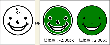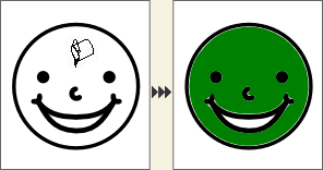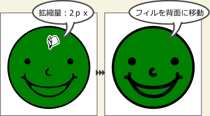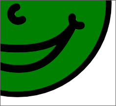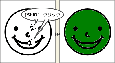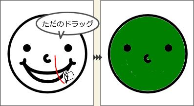 下記の顔を塗りつぶしたいとき、クリックするだけだと、口の部分が塗り残ってしまいます。
