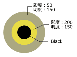 外側と真ん中の円は明度が同じですが、彩度が大きく異なります。