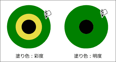 [塗り色]を[彩度]と[明度]にそれぞれ設定して、外側の円をクリックした場合、下記のようになります。