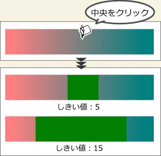 値が小さいほど境界の範囲が小さくなります。グラデーションのような境目が曖昧なものに適用すると違いがよくわかります。