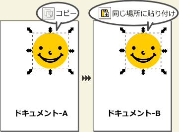 同じ場所に貼り付け]を選択すると、同じ位置に貼り付けることができます。