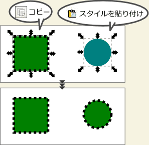 スタイルを貼り付け]を選択すると、コピー元のオブジェクトのスタイルと同じスタイルにすることができます。