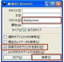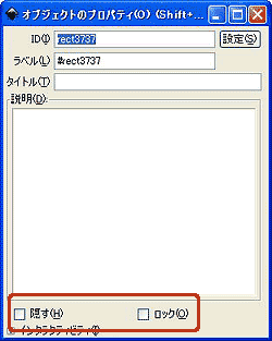 上記の[ロック]の場合と同様に、[XML エディタ]を使います。リスト上で選択すると、隠れているオブジェクトでも選択状態になります。