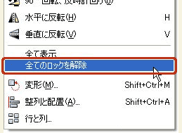 メニューバーの[オブジェクト]メニューから[全てのロックを解除]を選択します