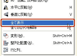 メニューバーの[オブジェクト]メニューから[全て表示]を選択します。