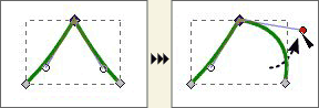 上記、拡大/縮小用の矢印が表示されたら、ノードのいずれか1つをクリックすると、回転/傾斜用の矢印に変わります。