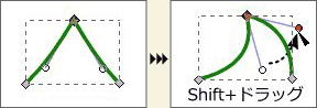 同じことを[Alt]を押しながら行うと、選択ノードの範囲で移動距離に差ができるので、粘土をつまむような感じでなめらかに変形できます。