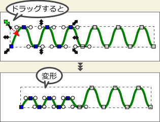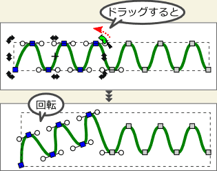 (選択ノードの変形ハンドルを表示)ボタンをONにすると、選択中のノードの配置を変形/回転することができます。